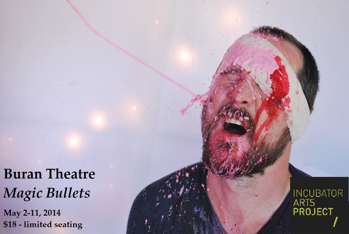 Since I will not be attending the full production of Magic Bullets, which ends its run at Incubator Arts Project this weekend, out of fairness to the company I will not be putting out a formal review. I did however want to follow up my Pre-Game post from last week with a few brief thoughts on the “in-progress” performance I was invited to by Buran’s co-artistic director, Adam R. Burnett, who wrote and co-directed the production with performer Jud Knudsen.