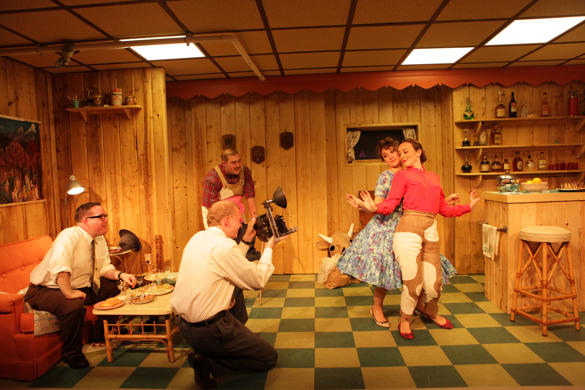 I will be honest and say that of all the Debate Society plays I’ve seen, The Eaten Heart has faded the most in my memory, perhaps because it is the most fractured. The play follows the bizarre behavior of a host of characters in a 1970’s hotel. Like the lighting in Cape Disappointment, what I remember most at this point is director Butler’s ingenious staging and the crisp atmospherics. Amanda Rehbein’s set consisted of three adjacent hotel rooms with one complete room in the center and two half rooms on either side. I say “half” rooms, because half of the rooms were obscured and invisible while the other halves were totally visible. This allowed for Bos and Thureen, who played all the roles, to give the impression that they were part of a two person scene where the other party was simply in the obscured part of the room. This conceit was crucial for simultaneous action. The whole thing was underscored by delightful period radio commercials and music that helped create an authentic sense of time and place.