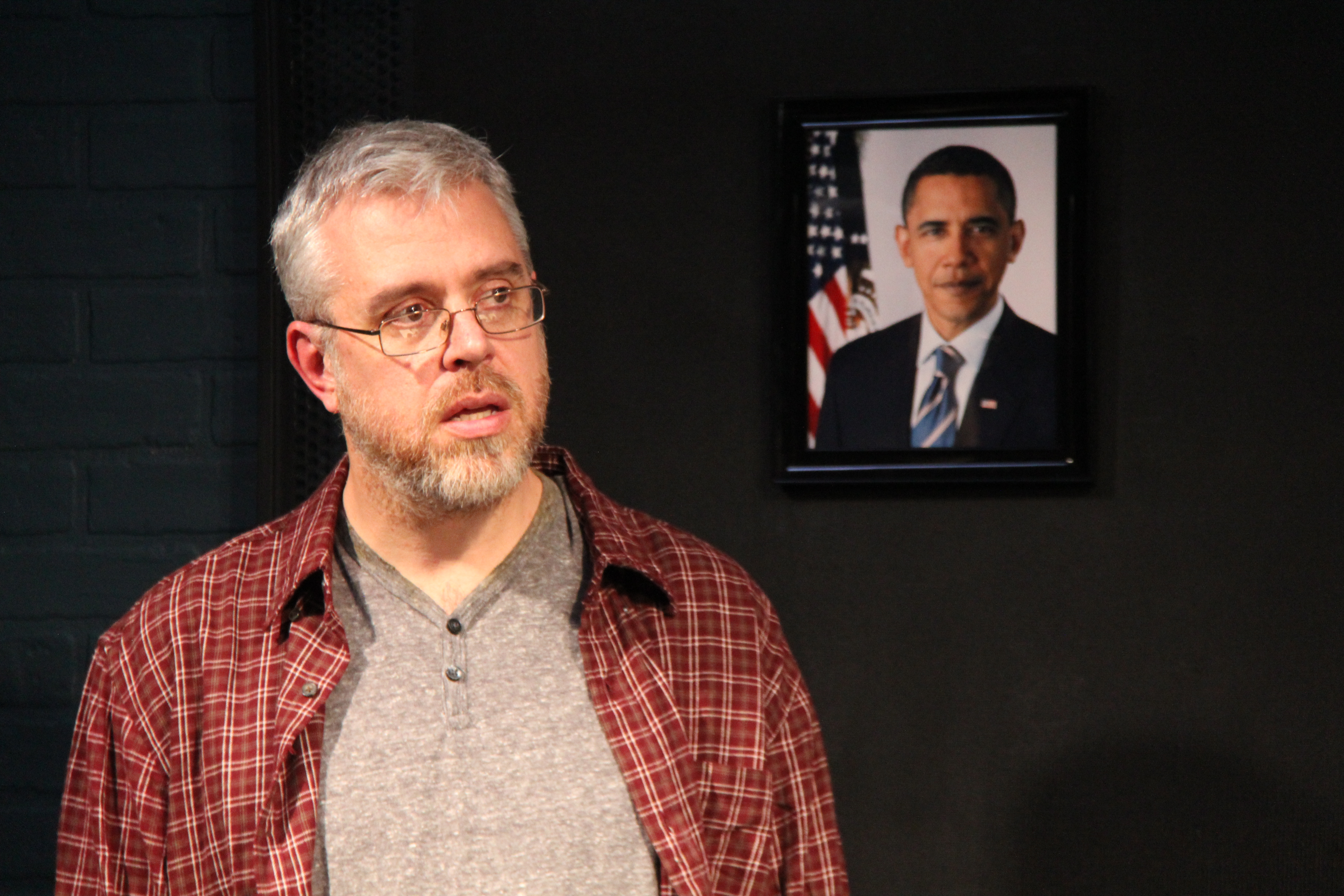 It’s amazing to me that with so much on the line Ruskin would be most flabbergasted by the thought that Sunny’s politics might have changed. In my lead in piece for Asymmetric I bet that Ruskin and Sunny’s relationship would be the focus of the show and it certainly is, but where the show really gets interesting is the broader discussion of American foreign policy they find themselves caught in the middle of. Rogers dabbled in international relations in his earlier play, Universal Robots, which recast a lot of twentieth century history, but this play has a lot to say about foreign policy right now. Essentially the only set decorations are 8 x 10 framed photos of President Obama and CIA director John Brennan, who loom over the events of the show like the portrait of the dad in The Glass goddamn Menagerie.